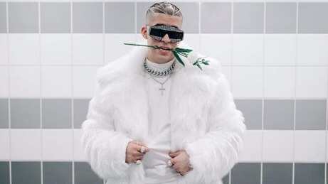 Bad Bunny rapidamente se volteó para mirar quién le había quitado el dicho accesorio.