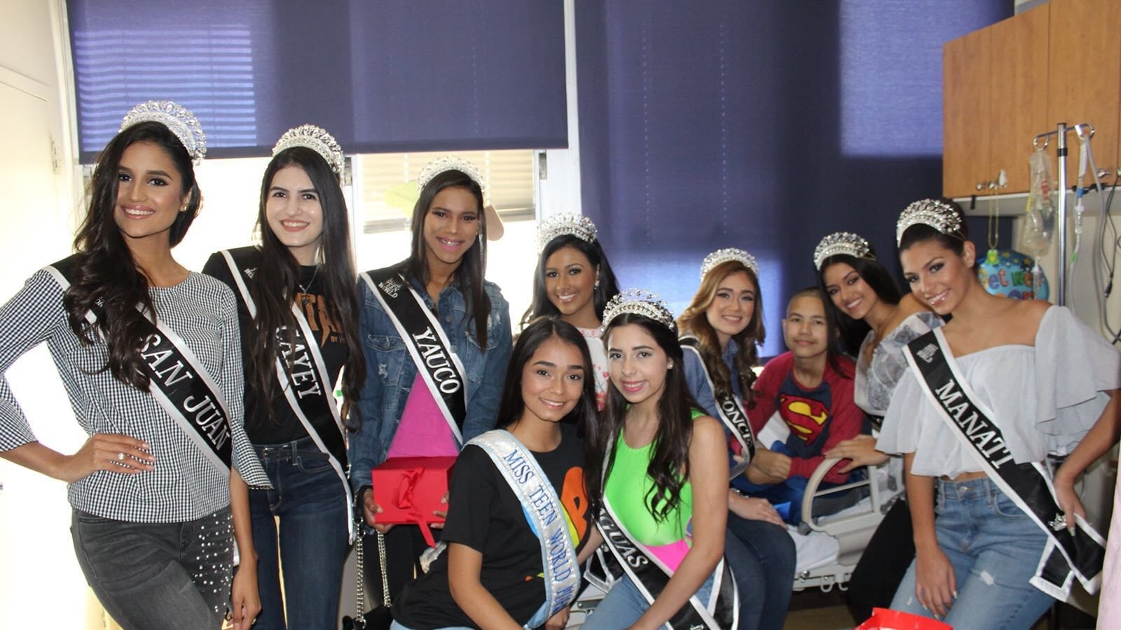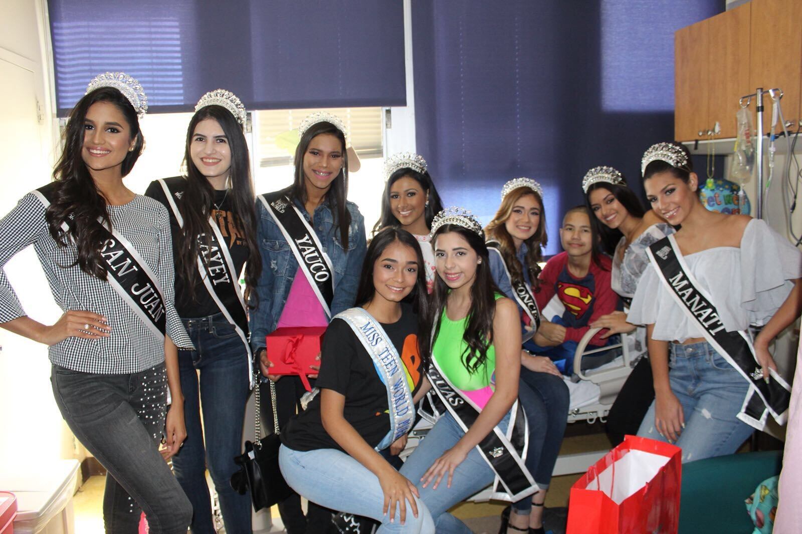 En días recientes, varias de las aspirantes al título de Miss Teen World Puerto Rico 2018 visitaron, por quinto año consecutivo, la Unidad de Oncología Pediátrica del Hospital Pediátrico Universitario en el Centro Médico junto a representantes de la Fundación CAP para llevar alegría, juguetes y sonrisas a las niñas y niños que reciben tratamiento en el lugar. Así lo dio a conocer el director y presidente del renombrado certamen de belleza local, Carlos Figueroa, quien anunció, además, que otros grupos de chicas concursantes continuarán visitando la instalación hospitalaria por las próximas 3 semanas con el mismo fin.