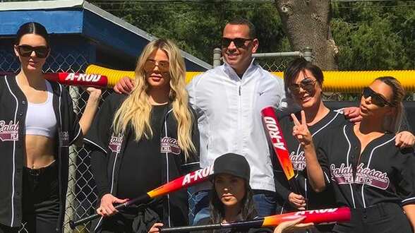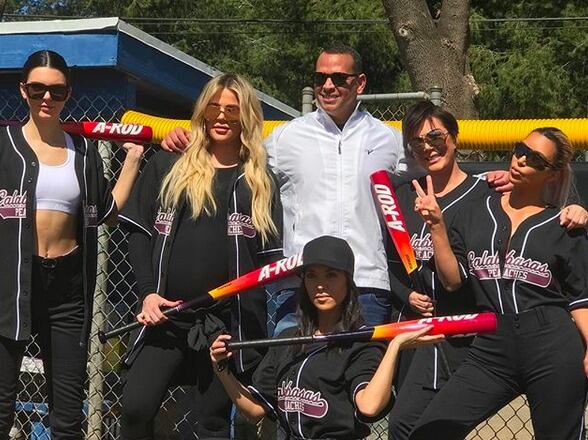 El ex pelotero de Grandes Ligas, Alex Rodríguez estuvo de coach de las Kardashians para un juego de bésibol en el que usaron en primicia su bate que sale al mercado este verano.