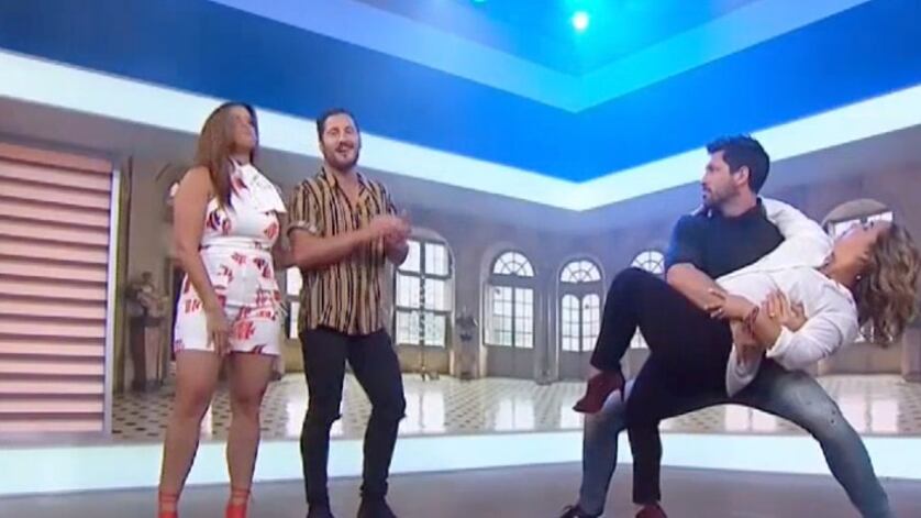 Las animadoras Rashel Díaz y Adamari López se lo gozaron todo con los hermanos bailarines Maks y Val Chmerkovskiy durante su visita a Un Nuevo Día.