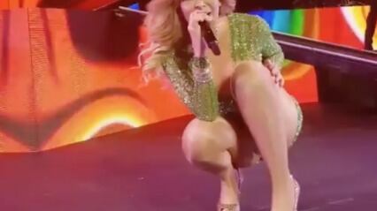 Lo anterior, provocó que la intérprete de “Todos me miran” mostrara de más en el escenario, ya que su diminuto atuendo no le ayudó a cubrir sus partes íntimas.