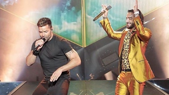 Después de cantar “Sin contrato” y “Desde esa noche”, la primera sorpresa de la noche fue la megaestrella Ricky Martin, quien apareció en el escenario para entonar “Vente pa ‘cá” junto a Maluma.