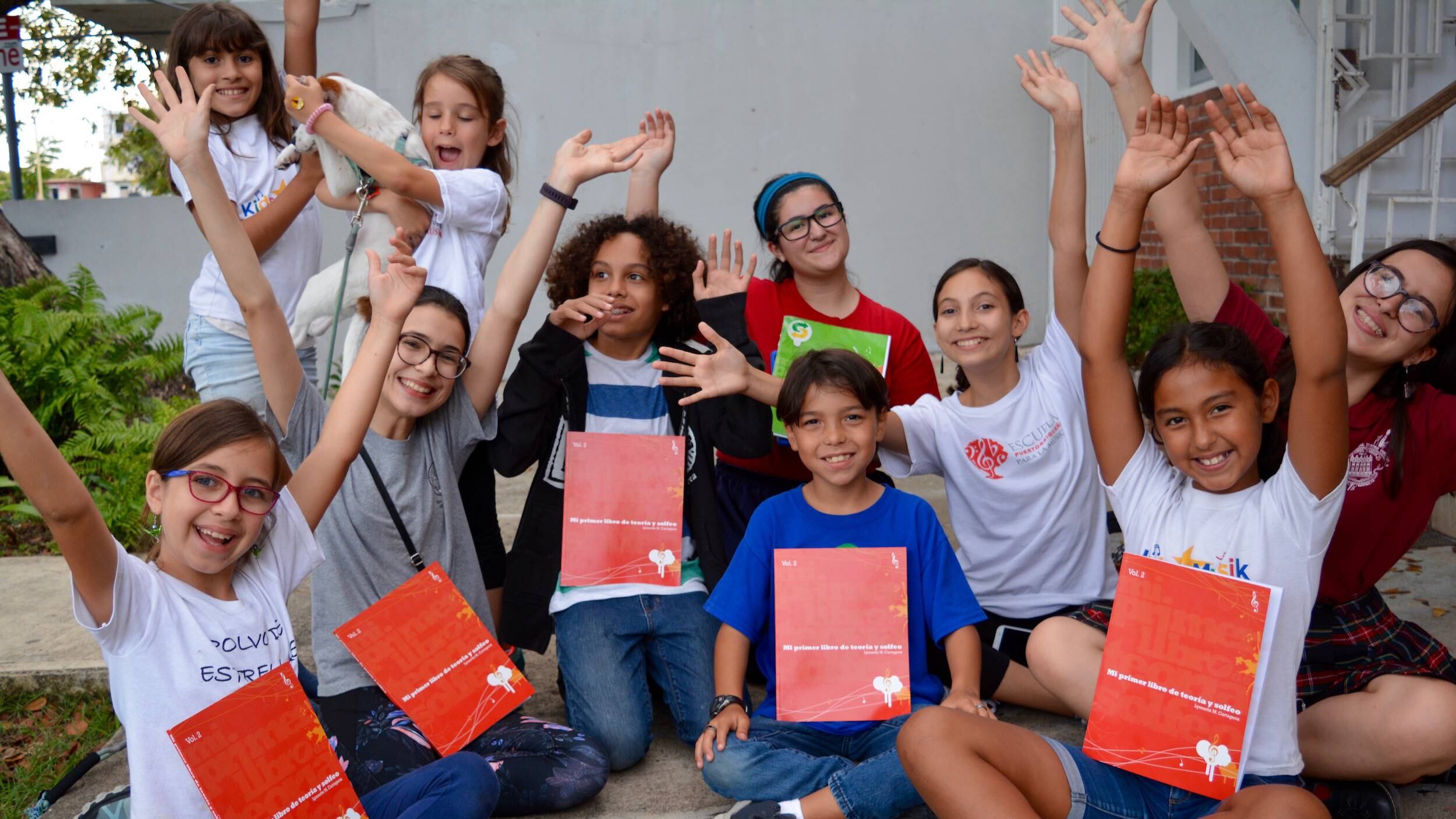 “Hice este libro porque quiero que disfruten del aprendizaje”, explicó Cartagena, quien aprendió el violín a los nueve años, y es a su vez madre y maestra de una violinista y de una pianista. “Aunque parezca complicado, los niños desde los cinco años pueden aprender teoría y solfeo con juegos, como dibujar notas en un pentagrama grande, lo que se ajusta a sus destrezas motoras. Hay que usar láminas a color, algo visualmente atractivo para los nenes. Hay que hacer ejercicios de repetición para que el estudiante internalice la destreza”.