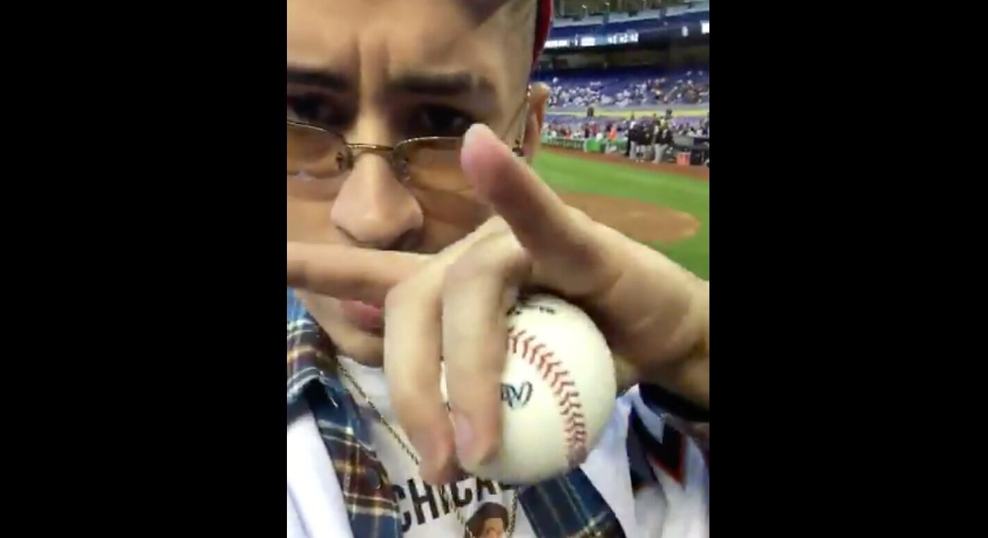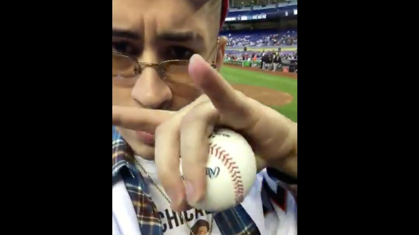 Vestido con una camisa de los Marlins de Miami, el cantante Bad Bunny envió ayer un saludo a los fanáticos y jugadores boricuas que siguen y participan de las Ligas Mayores,