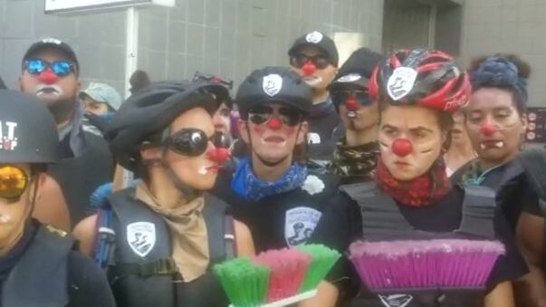 El escuadrón de policías payasos, personajes interpretados por estudiantes de Teatro de la Universidad de Puerto Rico, volvieron a asistir al Paro del Día Internacional de los Trabajadores. Explicaron que este año están velando por los derechos de los niños y su acceso a una buena educación pública.