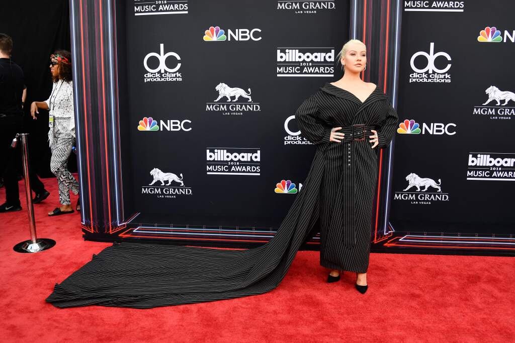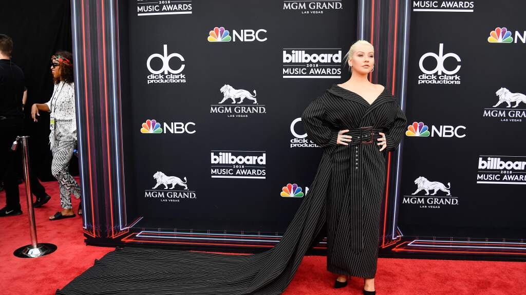La cantante Christina Aguilera llegó a los premios con un vestido que no le favorece.