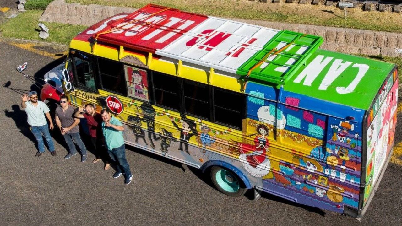 Un grupo de amigos se lanzó a la aventura del Mundial a bordo de “La Bendición”, un autobús que modificaron con símbolos y detalles mexicanos.