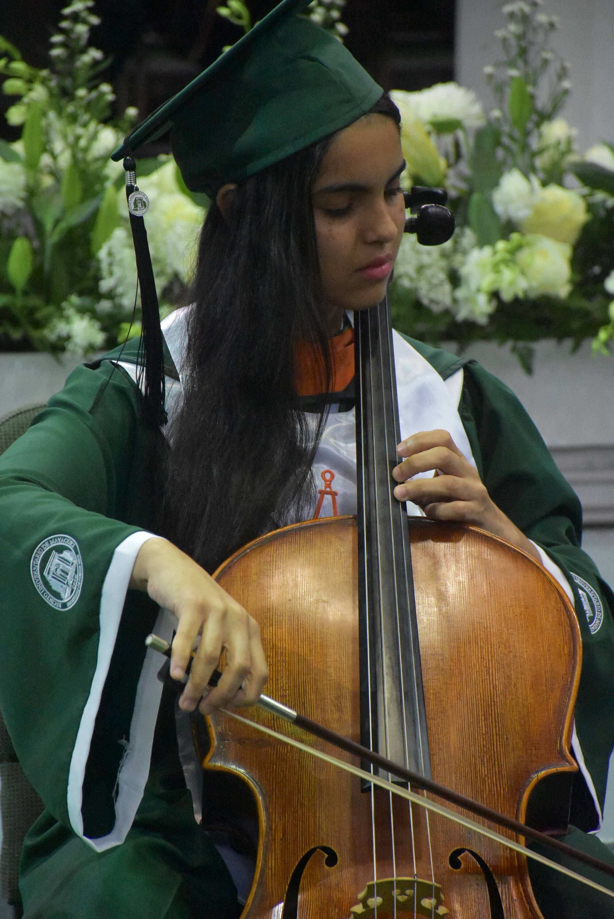 La colegial ha cautivado la admiración de sus pares desde que interpretó la Zarabanda de la Cuarta Suite de Bach, con su violonchelo, en su audición para ingresar Orquesta de Cuerdas del Recinto, cuando tenía tan solo 16 años.