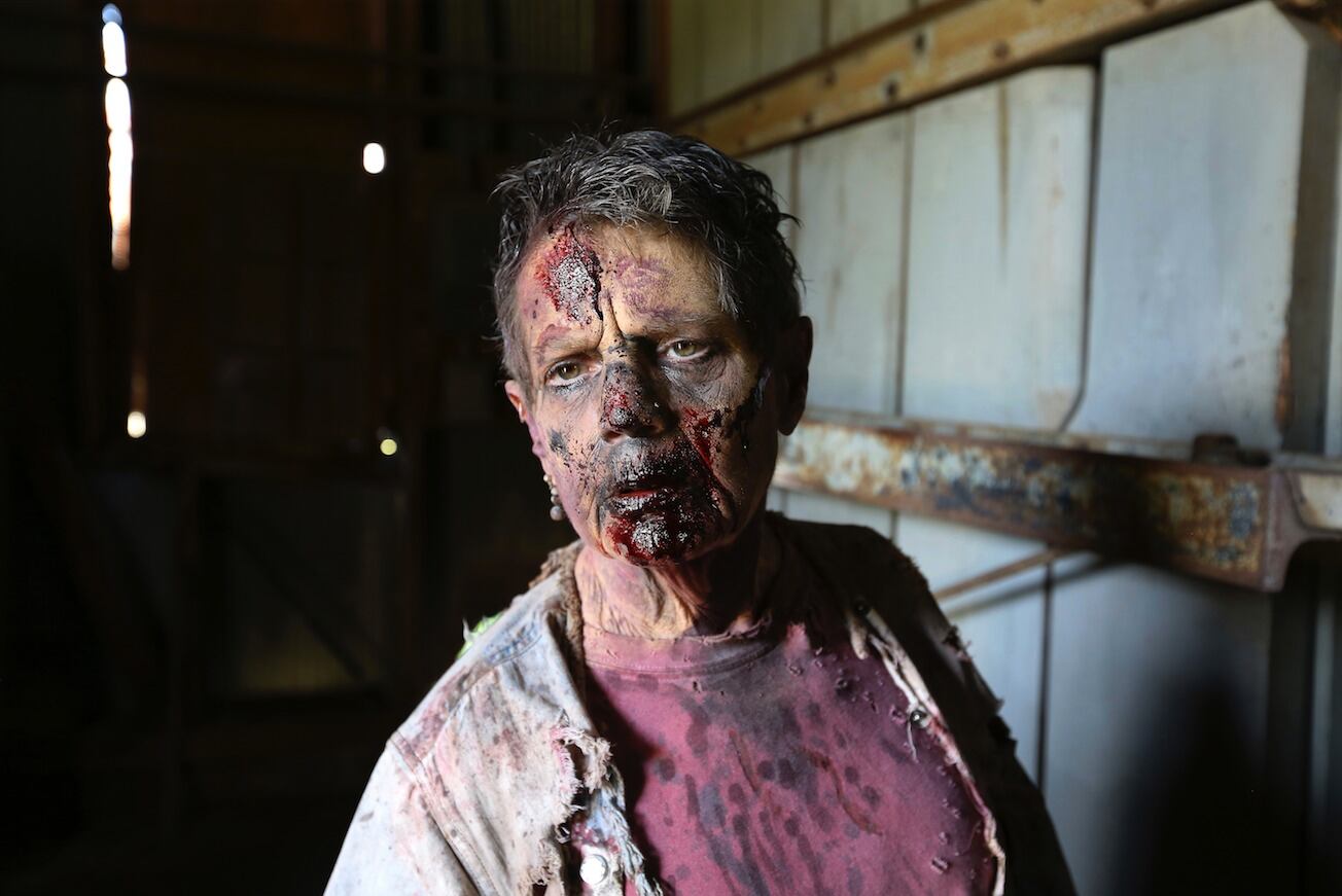 Ahí es donde Hamrick entra en acción. Llega con su vestuario sangriento de zombie para aterrorizar y encantar a aquellos que están haciendo el tour. En un momento está arrastrándose lista para devorarlos y al siguiente se transforma en una abuela que ríe y se toma fotos con los fans.