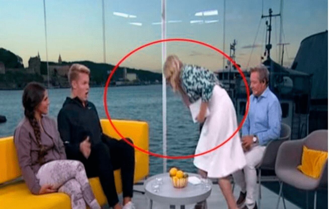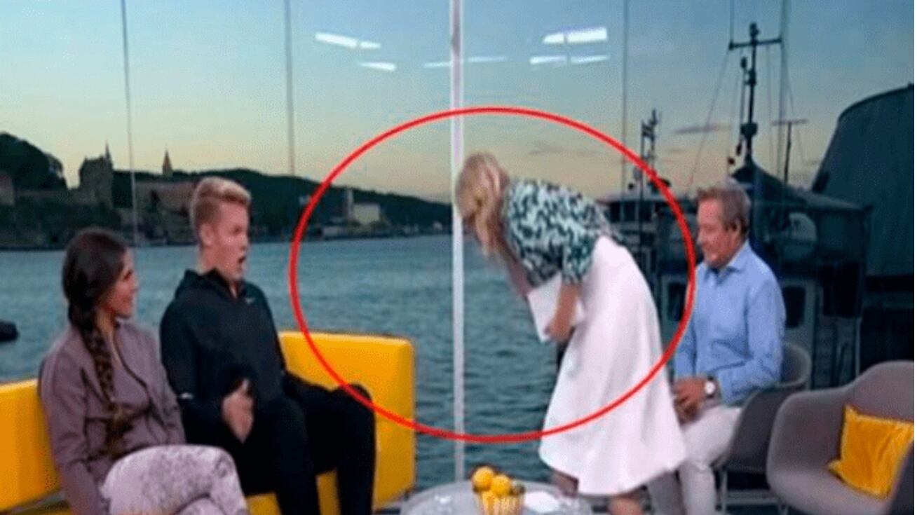 En plena transmisión en vivo de un programa de la cadena noruega TV 2, la conductora Linn Wiik no pudo contener las náuseas y vomitó sobre el bloguero Vegard Harm, que fue invitado al show.