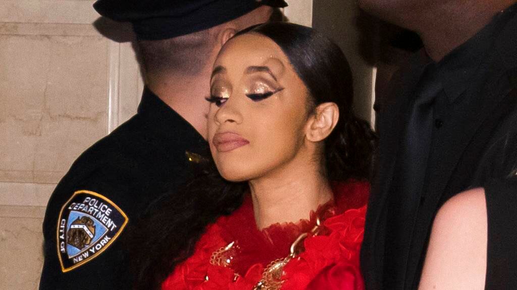 Cardi B, vestida con un voluminoso vestido rojo de Dolce & Gabanna, fue vista saliendo de la fiesta con lo que parecía ser un golpe en la cabeza. Iba descalza.