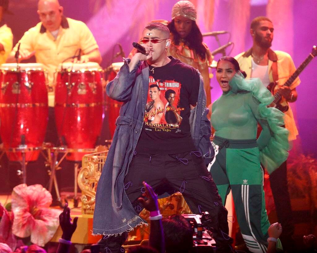“Estamos pegaos, estamos de moda”, dijo Bad Bunny sonriente. “Yo creo que cada vez los latinos son más y más en los Estados Unidos y ganan más terreno. Y cada vez tienen un papel, un rol, un puesto muy importante en lo que es la sociedad, la cultura en los Estados Unidos, y es una bendición que se dé todo esto. Yo creo que son años de lucha, de sacrificio, de trabajo y ahora se están viendo los resultados y va a seguir creciendo la ola, el impacto va a ser mayor así que con todo, ‘ready’ (listo) pa’ lo que venga”.