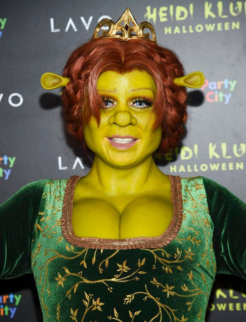 La supermodelo y presentadora de TV se vistió como la princesa Fiona de “Shrek” el miércoles para su 19na fiesta anual de Noche de Brujas. Pero no compró un disfraz en una tienda.