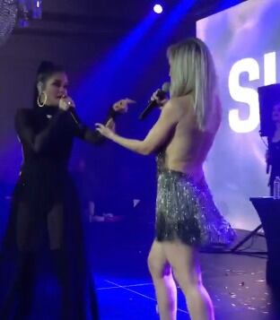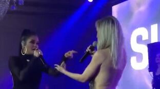 Durante la celebración del aniversario de la empresa bMedia Group, ambas entonaron la canción Sin Pijama, que la dominicana originalmente interpreta junto a Becky G.