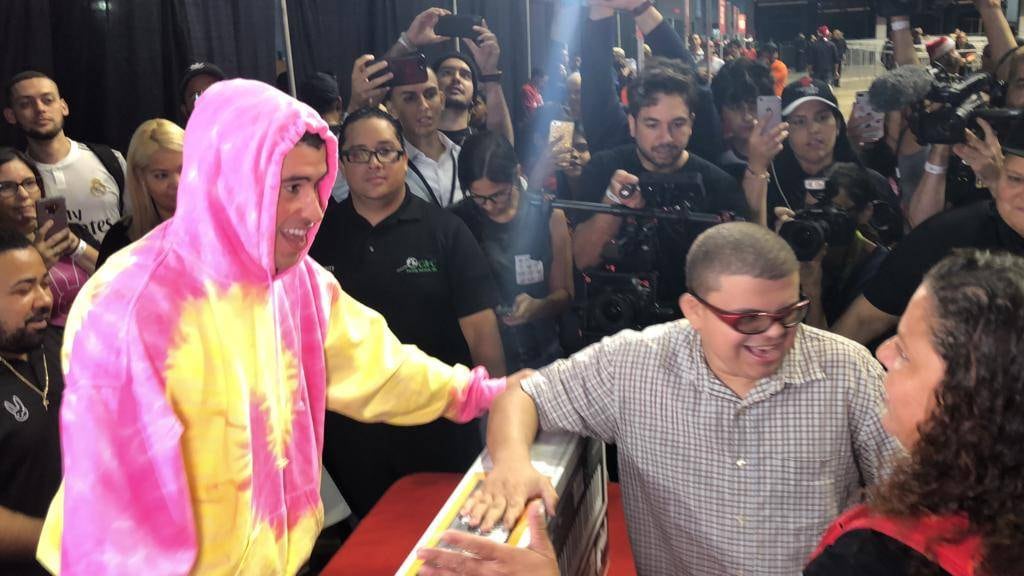 Desde las 4:30 de la madrugada, familias de Bayamón, Carolina, Morovis, Utuado, Toa Alta, entre otros, madrugaron para salir del Coliseo Roberto Clemente con una sonrisa, un regalo y, por qué no, un retrato con el artista.