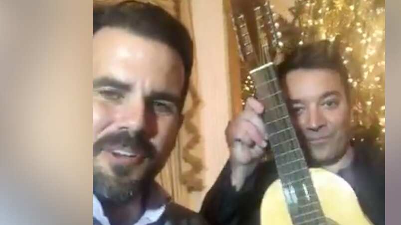 “Mira quién está aquí, Jimmy Fallon”, dice el gobernador al presentar al famoso comediante, al tiempo en que Fallon con el cuatro en mano aseguró que “lo estoy trabajando, lo estoy afinando, voy a tener algo terminado para el show del martes. Gracias por tenerme aquí. Prometo hacer una canción buena y graciosa en honor a P.R”.