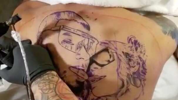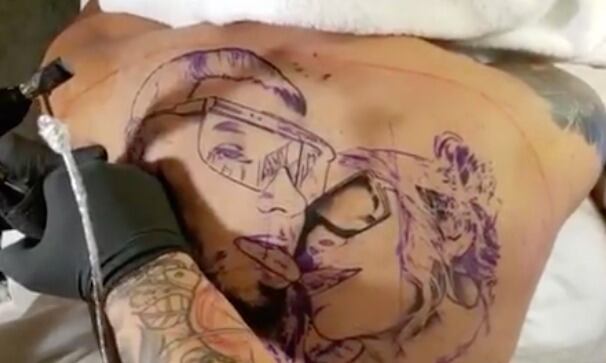 En el mencionado tatuaje se ve ambos artistas urbanos sacando la lengua.