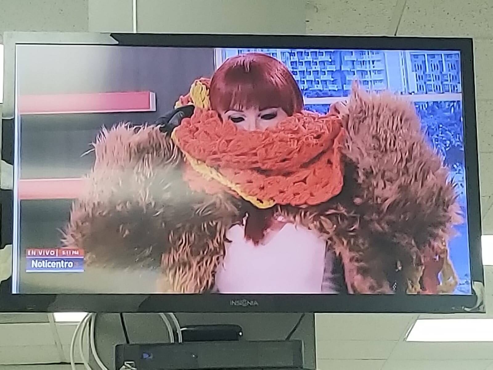Durante el reportaje, Vélez quien asistió al estudio de Wapa con un extravagante abrigo de frío, enseñó a los televidentes varias piezas de ropa claves para pasar el fuerte frío durante el invierno que aún no termina en EE.UU.
