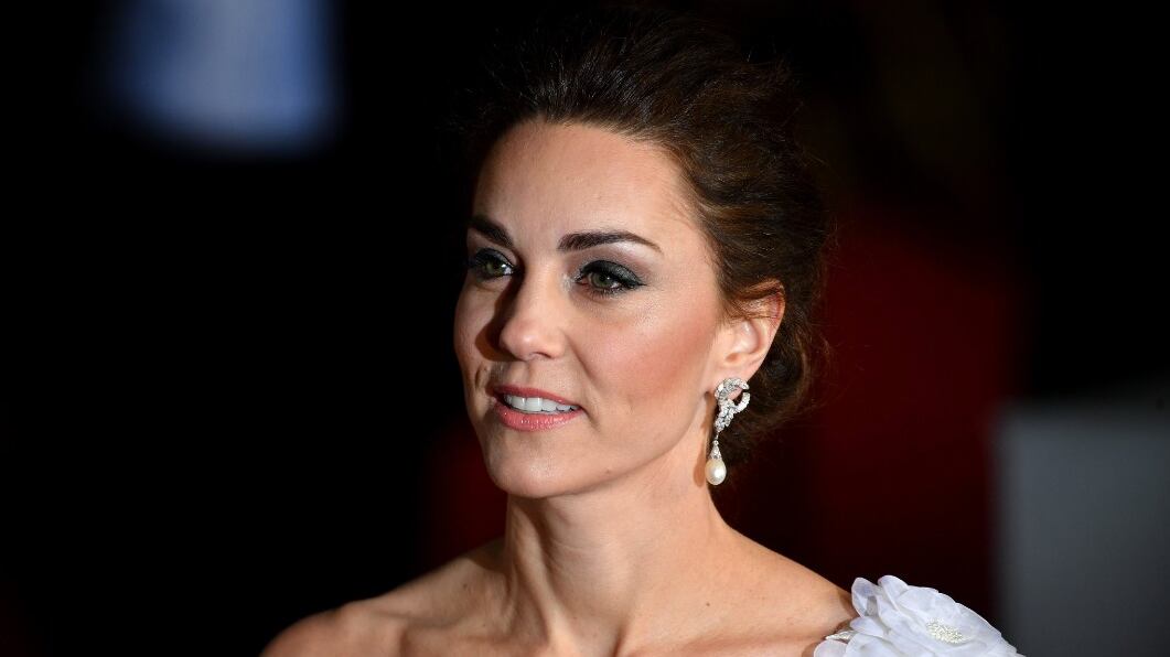 Kate Middleton optó por lucir una cabellera recogida, la cual hizo acompañar por unos pendientes de diamantes con una perla, además de un brazalete de pedrería.