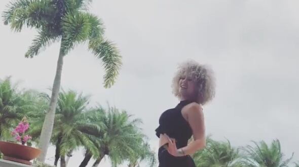 Angelique “Burbu” Burgos no pudo resistirse a menearse al ritmo del cantante boricua PJ Sin Suela y puso a mover la pelúa en dos vídeos colgados en las redes sociales de la locutora.