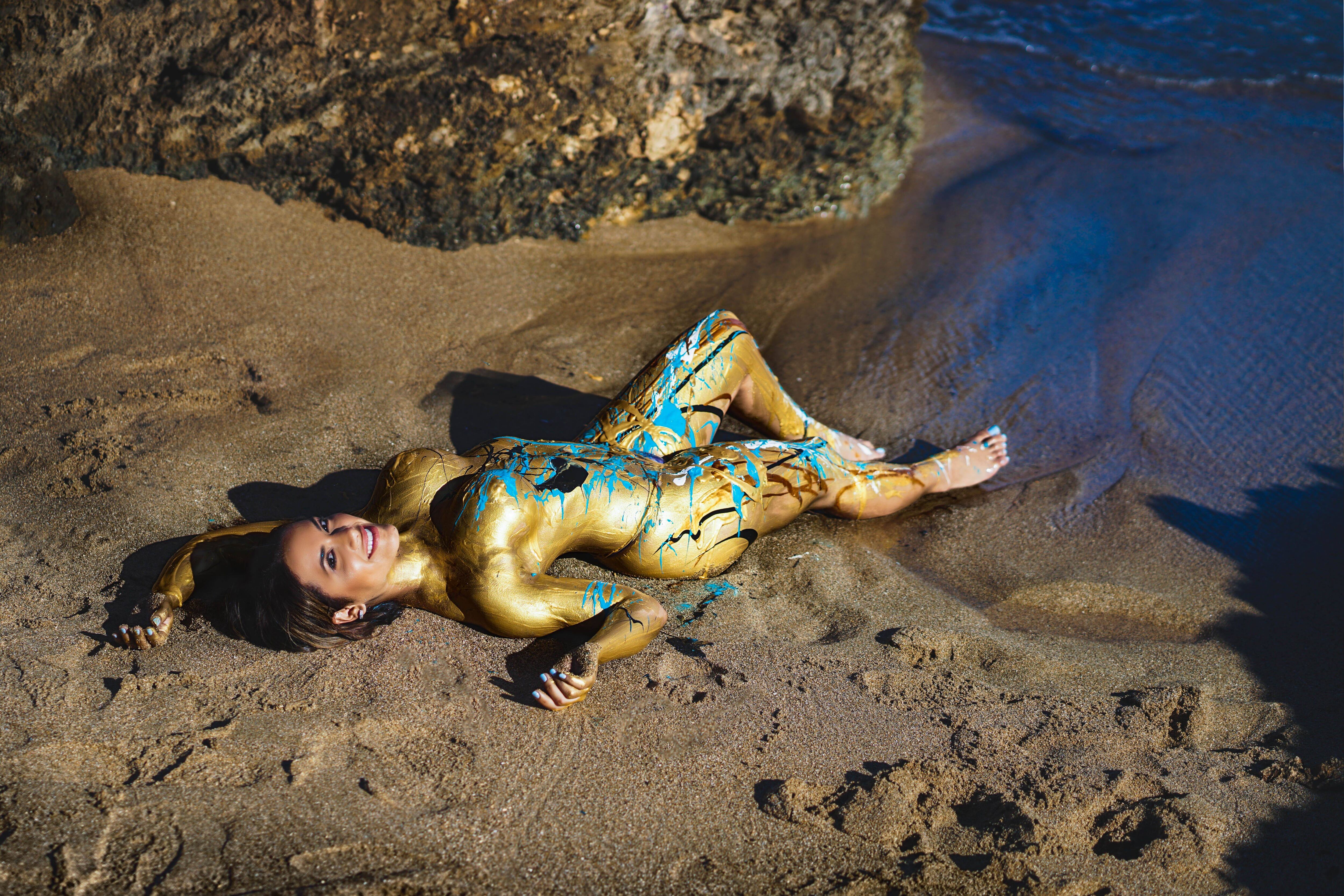 Bajo esta premisa hizo una sesión de fotos con body painting para el lente del fotógrafo Senen Llanos, en la que muestra su torneada figura.