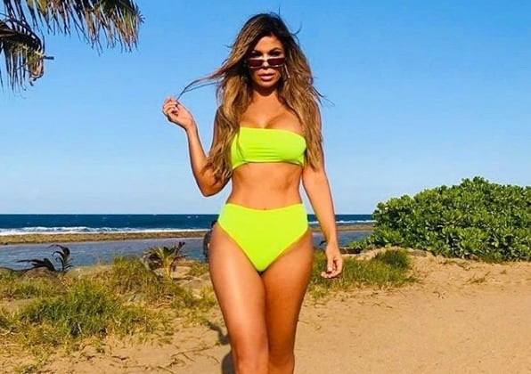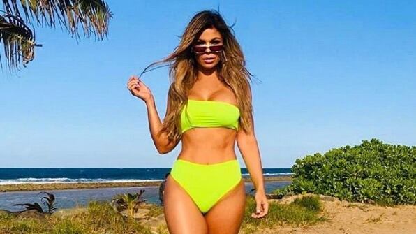 “Puñe%$A”, soltó la modelo al ser picada por un insecto en medio de la grabación para la recreación de su poder de la semana que fue transmitido en pantalla grande en el concierto del exponente del género urbano el pasado sábado.