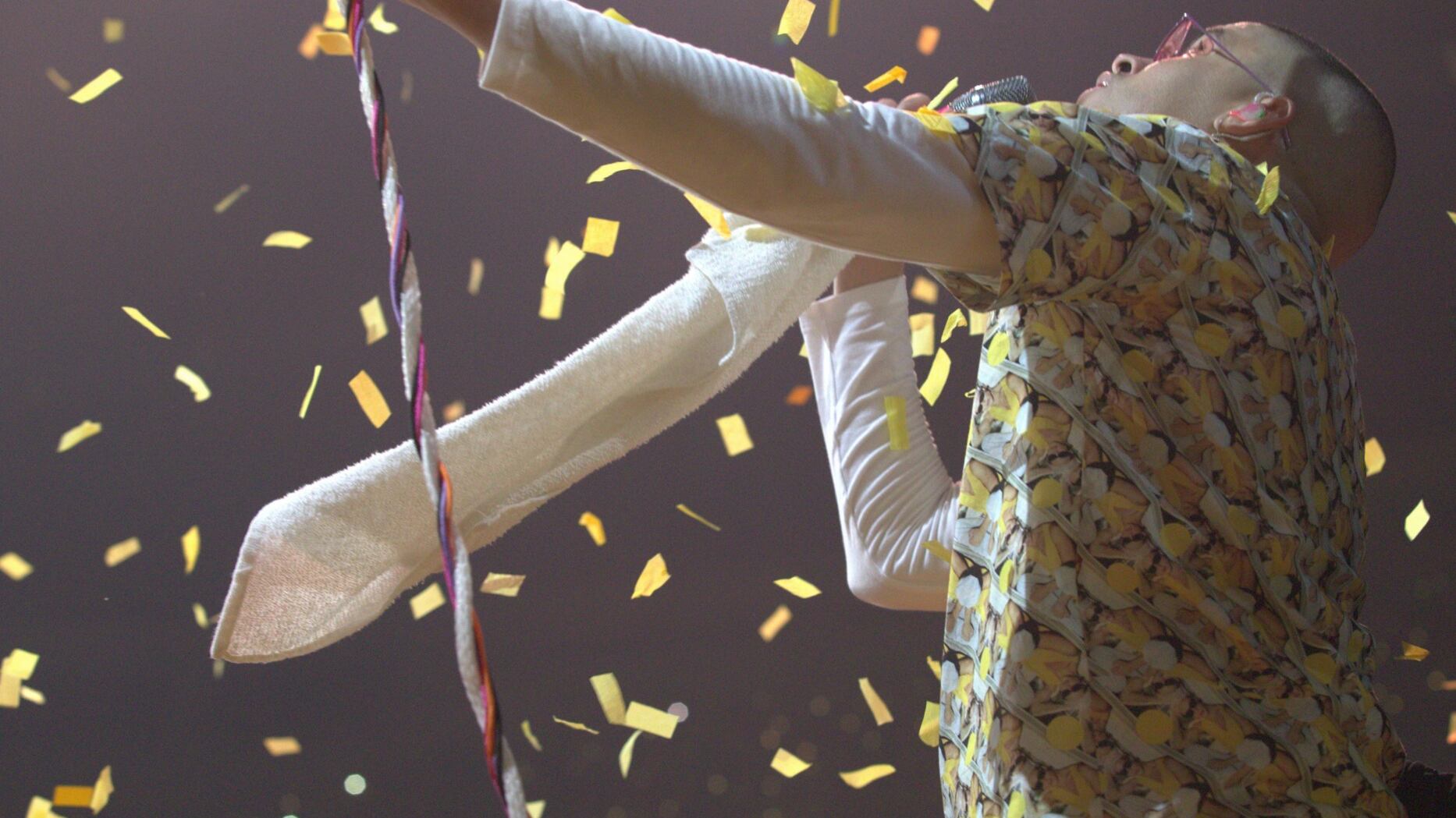 Después de cantar su repertorio, el público junto a los artistas invitados comenzaron a cantarle cumpleaños, mientras bajaba del techo una enorme piñata de 12 pies de altura.