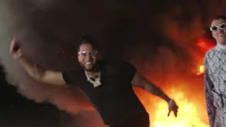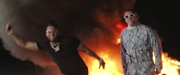 Como parte del famoso fragmento “fire, fire” de la canción que forma parte de la producción x100pre, ambos quemaron un lujoso Lamborghini.