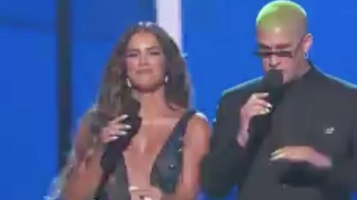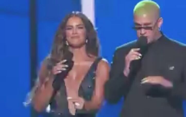 Más tarde, Bad Bunny cambió su look elegante por uno sport y dio un enérgico espectáculo al entrar al escenario de los premios en un jet ski para interpretar a “200 MPH” y “Tenemos que hablar”.