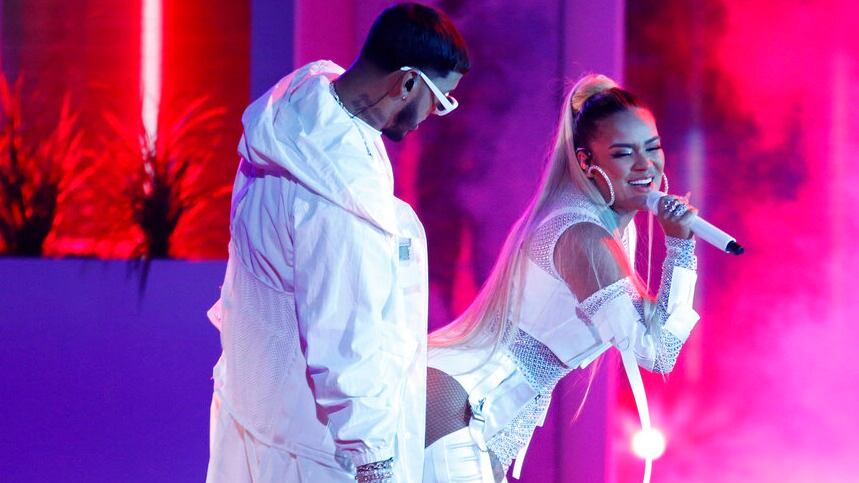 El comunicador le preguntó a la artista de 28 años si colaboraría en una canción con la boricua Ivy Queen a lo que esta respondió “¿Por qué no?”, mientras miraba a su pareja, el trapero Anuel AA.
