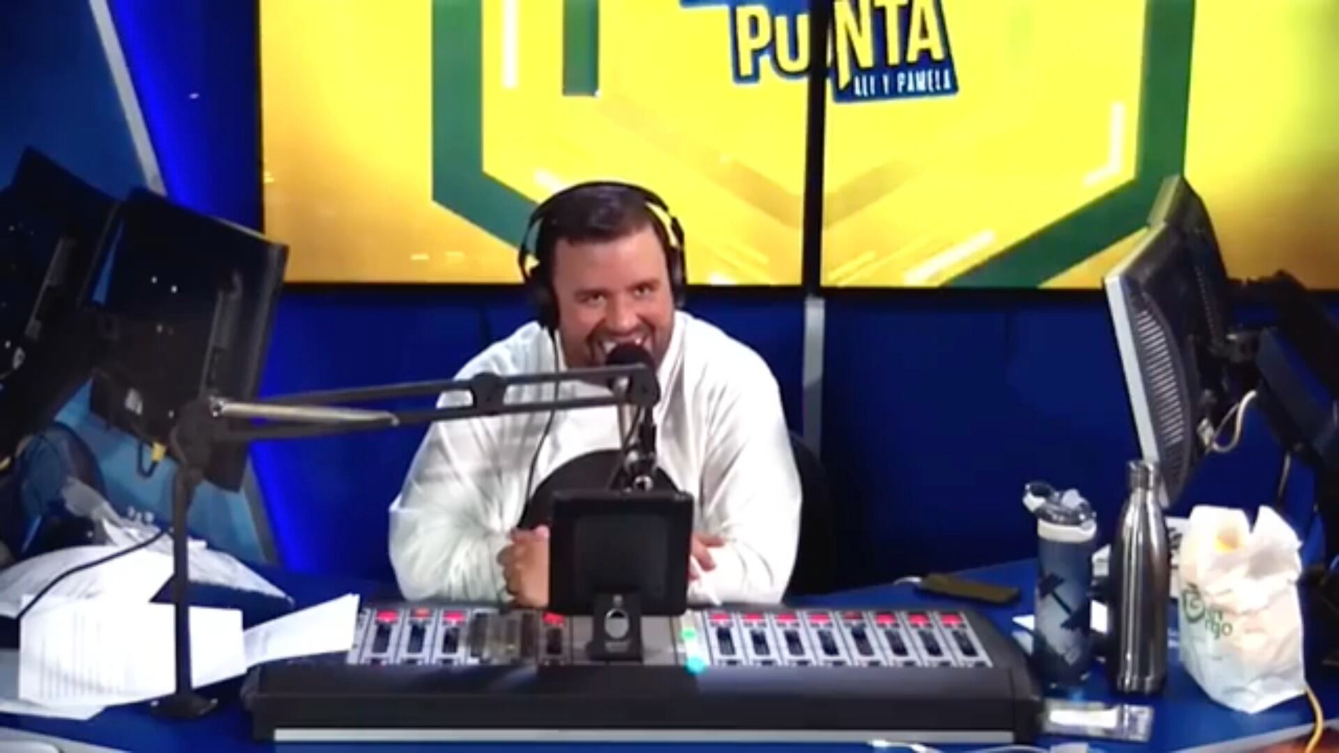 El momento se dio durante el programa radial “Molusco y Los Reyes de la Punta”, transmitido por La Mega FM, donde se vacilaron la pasarela del locutor junto a Julián Gil en San Juan Moda.