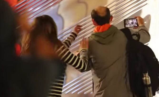 Cuando la actriz se percata que la persona desea tomarse una foto a su lado reacciona de manera violenta y le quita el celular,