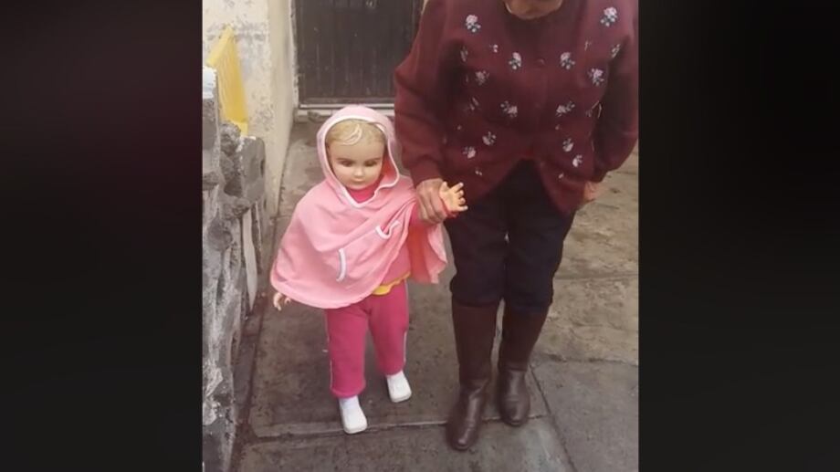 Las imágenes comenzaron a difundirse desde hace unos años atrás hasta la actualidad. Se trata de una muñeca, llamada con el nombre de rosita, que empieza a caminar al ser tomada de la mano por su dueña.