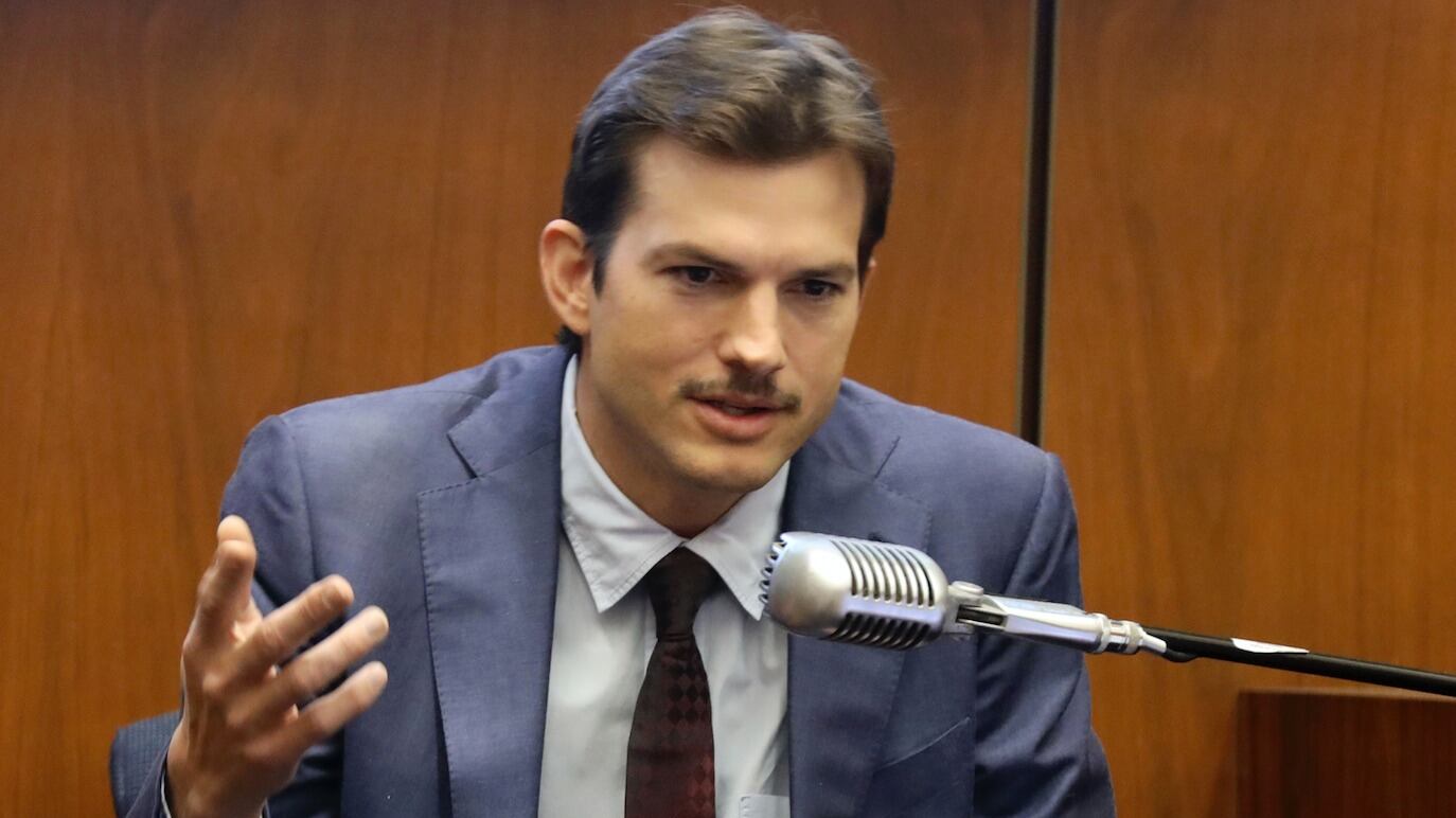 En la corte Kutcher no se parecía nada a los personajes desarreglados y torpes que suele interpretar, llevaba un traje de lino azul con el cabello corto y un bigote recortado al dar 40 minutos de testimonio sombrío ante el juez Larry P. Fidler.