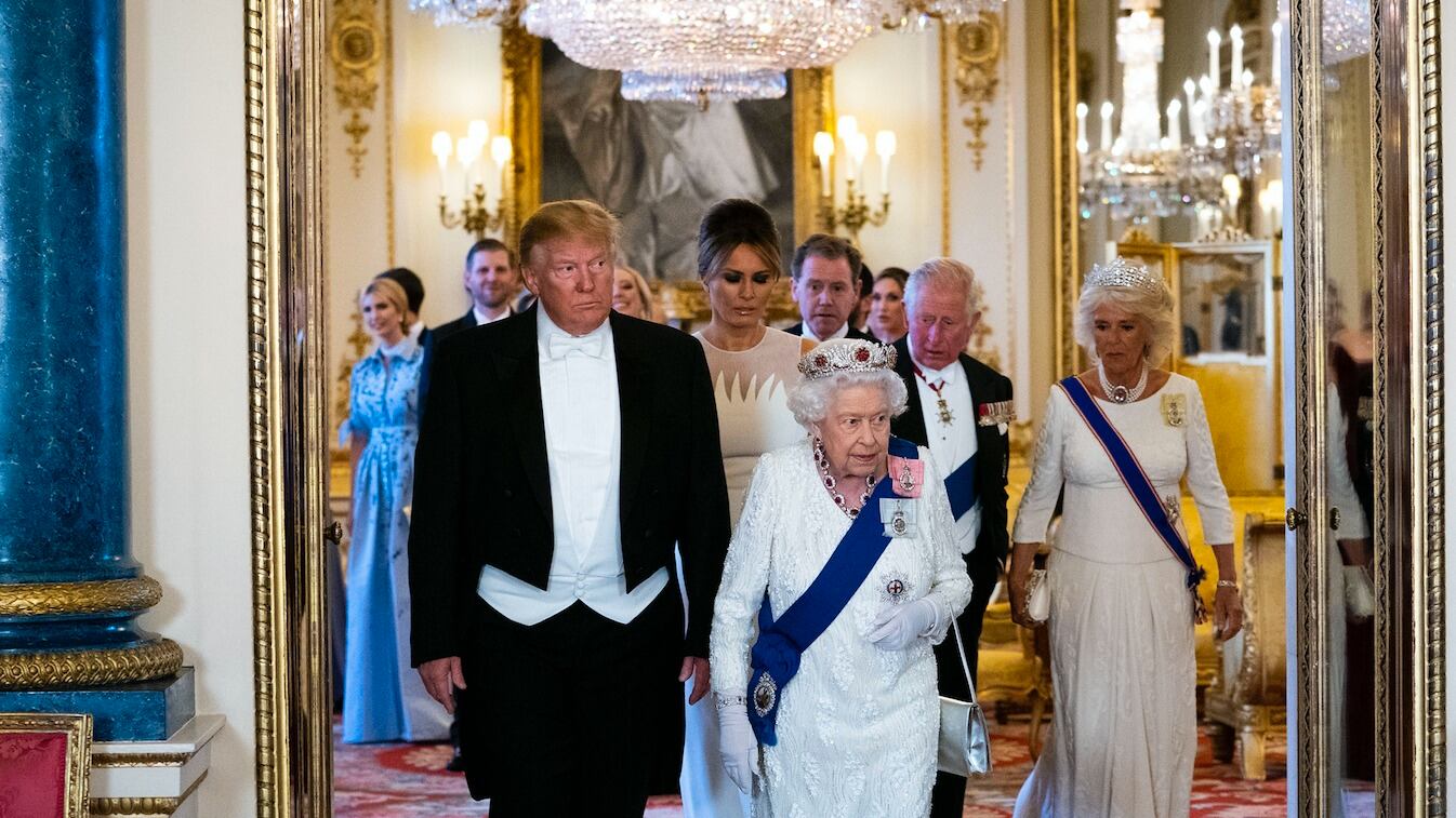El presidente de Estados Unidos Donald Trump y su esposa, la primera dama Melania Trump asistieron hoy a la mesa de Estado en el Palacio de Buckingham en Londres, organizado por la reina Isabel II.