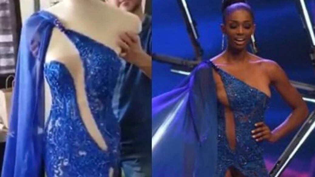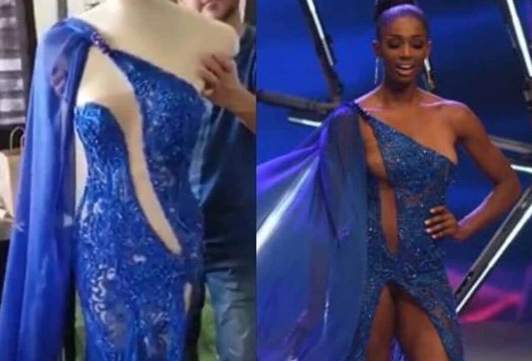 El propio diseñador del vestido de la candidata de Carolina, Javier Arnaldo Santiago, confirmó en su cuenta de Facebook, que a la joven no le habían puesto el traje de gala de la forma correcta.
