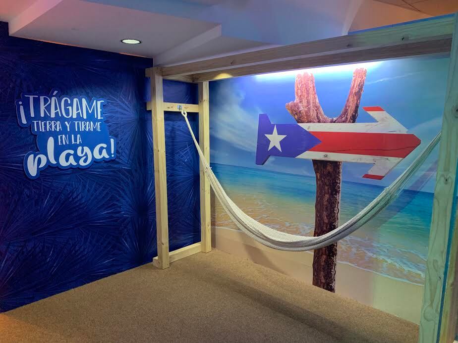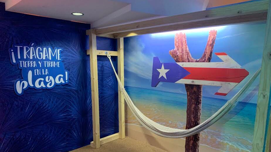 El salón azul simboliza “el paraíso”, con una piscina de bolas y una hamaca, para “sumergirse en las playas de Flamenco, Mar Chiquita, Culebrita y Crash Boat”.