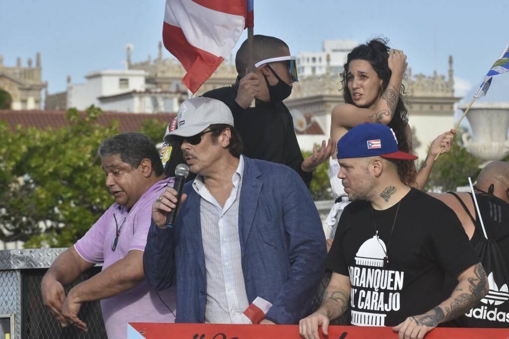 Del Toro se unió a Residente, Bad Bunny, Tommy Torres, Karla Monroig y Pj Sin Suela, que fueron parte de los artistas que dijeron presente a la manifestación que se celebra en el Viejo San Juan para exigir la renuncia del gobernador Ricardo Rosselló.