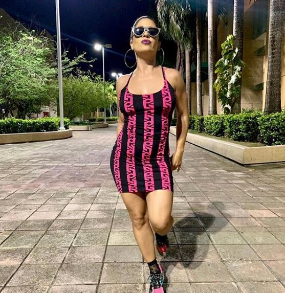 “🎼Dale…..dale @donomar Daleeeeeee 🎵pa’ que se muevan las yales 🎶….. #throwback #tbt #coreandole al #king 👑🙌🏻💪🏼💥🔥 #stage #chino cómodo 😳😱🤦🏻♀️🤣😂😎 (sic)”, escribió la actriz, haciendo referencia a la canción “Dale Don Dale”
