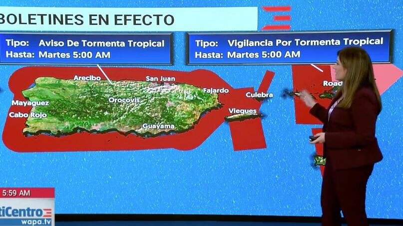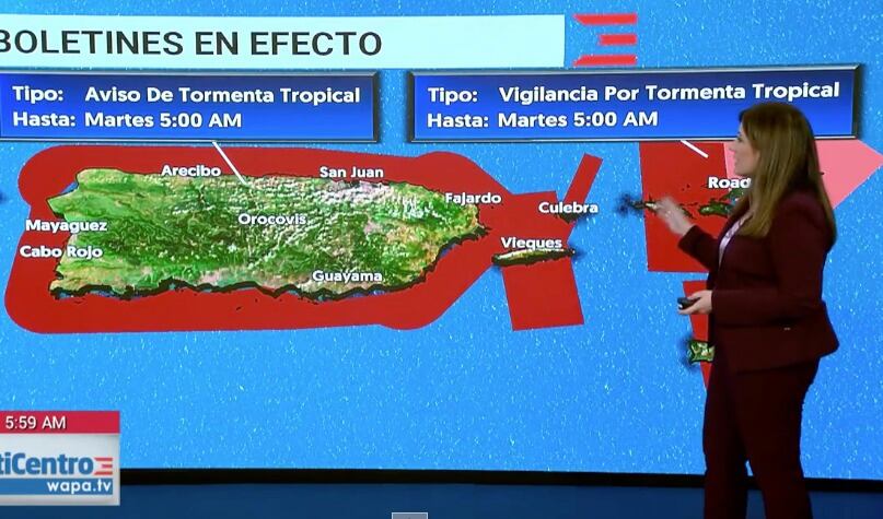 La meteoróloga Ada Monzón se incorporó en la mañana de hoy, lunes, al equipo de “Noticentro al amanecer” (Wapa TV) con el anuncio de aviso de tormenta tropical para Puerto Rico por la cercanía de Karen.