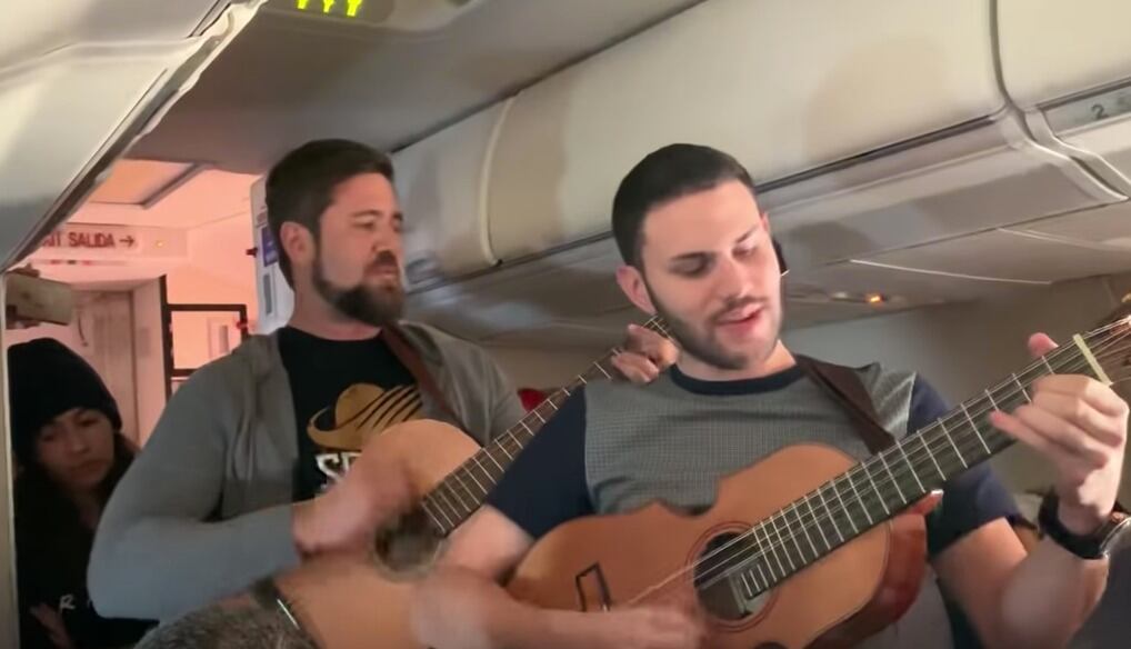 Los músicos puertorriqueño Hermes Croatto y Luis Sanz sacaron sus instrumentos en pleno vuelo de la aerolínea Southwest con destino de Chicago a Puerto Rico y deleitaron con su talento a los pasajeros.