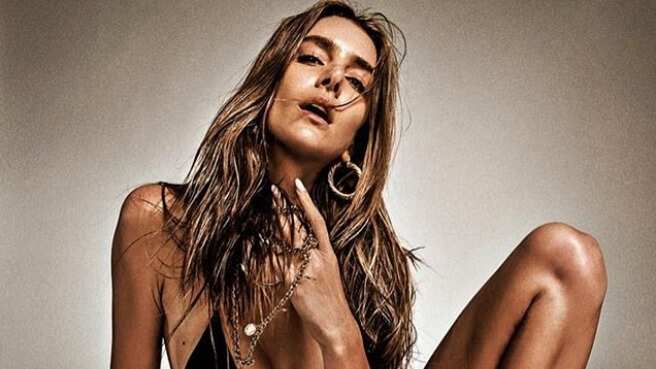La modelo argentina, de 26 años de edad, tenía puesto un vestido de baño enterizo, de color claro, con una sensual abertura en el abdomen que deja ver su cuerpo tonificado.