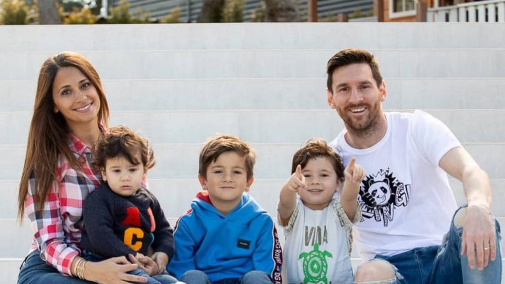 En la foto, Lionel y Antonela aparecen junto a sus pequeños tres hijos, Thiago, Mateo y Ciro; todos con ropa navideña y junto a un enorme árbol de Navidad.