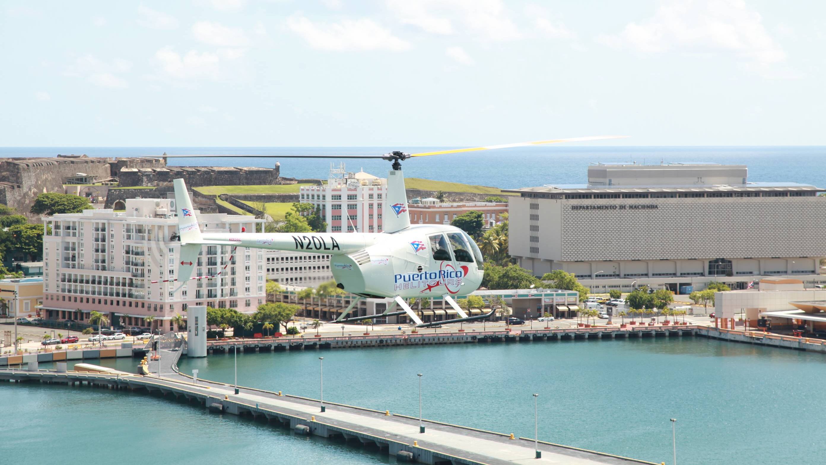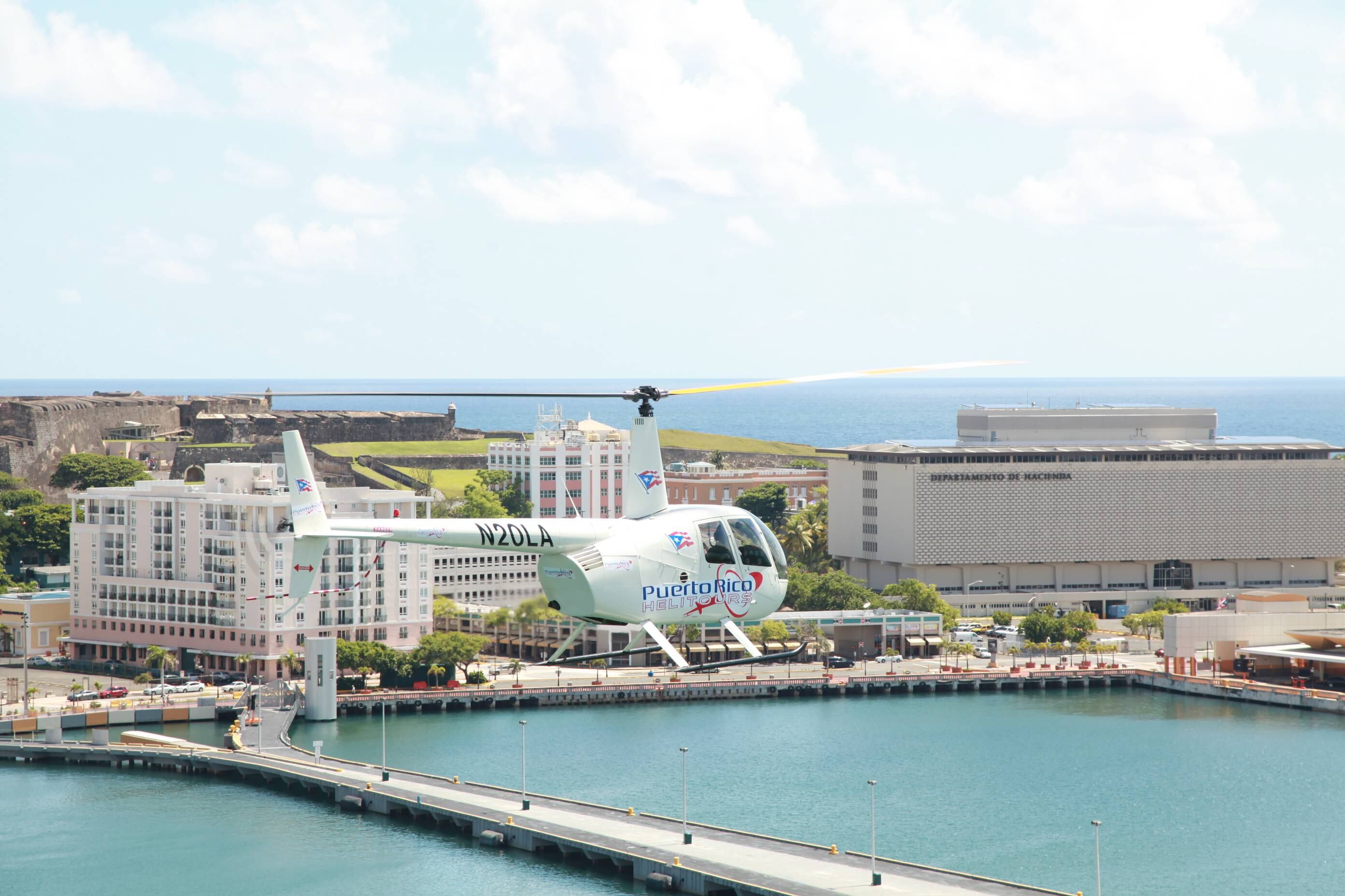 La compañía Puerto Rico Helitours ofrece una manera diferente y divertida para llegar a las Fiestas de la Calle San Sebastián.
