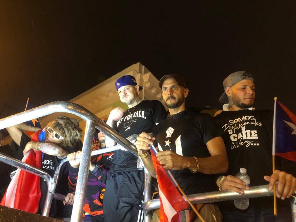 El cantante René Pérez y los peloteros de las grandes ligas Yadier Molina y Javier Báez se unieron a múltiples sindicatos en una manifestación que salió del Capitolio hasta La Fortaleza, para exigir la renuncia de la gobernadora Wanda Vázquez y del presidente del Senado de Puerto Rico, Thomas Rivera Schatz.