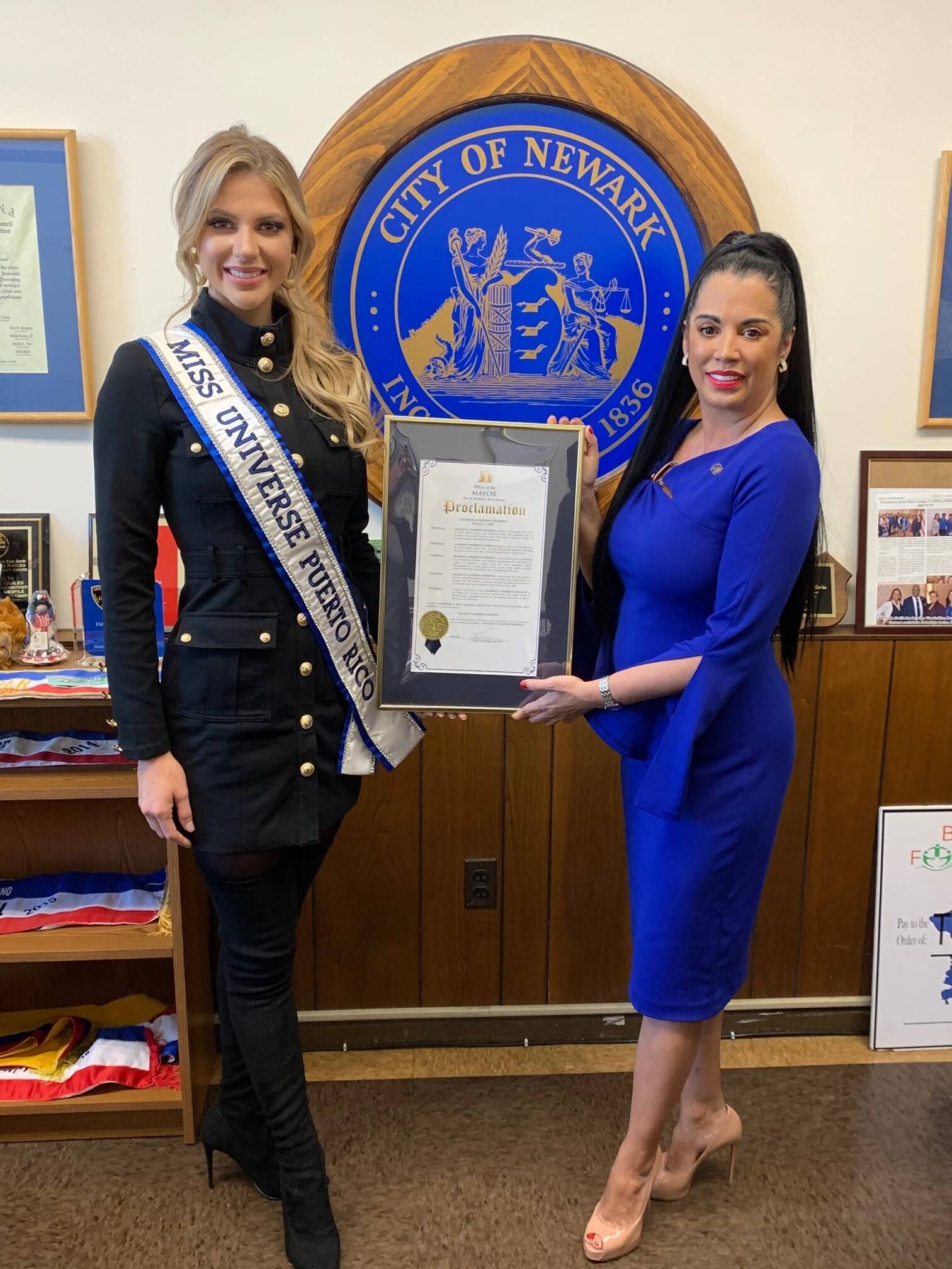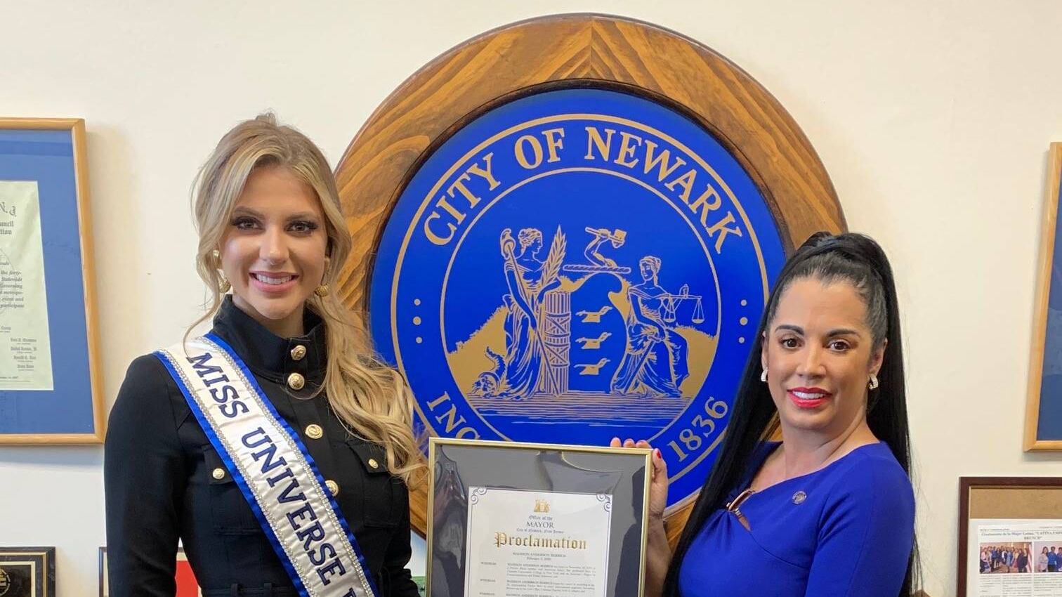 La Miss Universe Puerto Rico 2019, Madison Anderson fue distinguida hoy en la ciudad Newark por su vice alcaldesa Jacqueline Quiles, quienes le presentaron proclama firmada por el Alcalde Ras Baraka por su labor filantrópica, su desempeño durante su carrera como Miss Universe Puerto Rico y como primera finalista en Miss Universe.