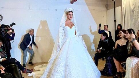 Anderson Berríos cerró el desfile modelando un hermoso y elegante vestido de novia color blanco. También lució un flamante traje color rosa que tenía varias flores gigantes.