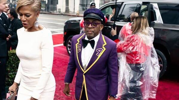 El director estadounidense, Spike Lee quiso recordar al aclamado ex jugador de baloncesto, Kobe Bryant, y vistió un traje con los colores de su equipo, Los Angeles Lakers.