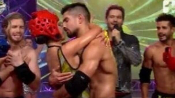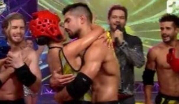 Tras el romántico intercambio de palabras, la pareja se besó y se abrazó ante las miradas y suspiros del elenco del ’reality show’ que se ve en Colombia por el Canal 1.