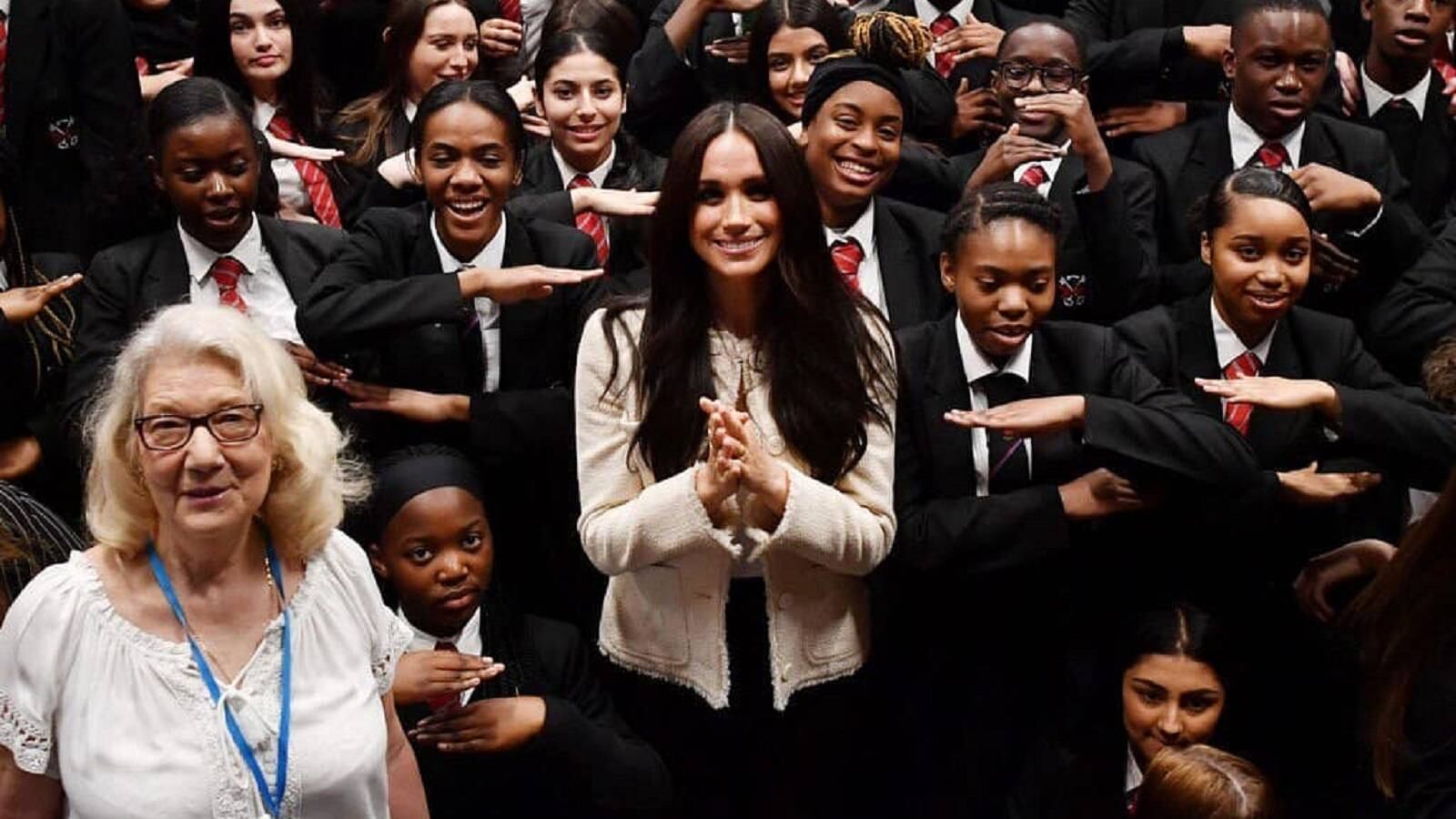 “Asegúrese de que se sientan valoradas y seguras. Unámonos todos juntos para que el Día Internacional de la Mujer sea algo que no sea solo el domingo, sino que se sienta francamente todos los días del año”, dijo la esposa del príncipe Harry a los alumnos del Escuela Superior Robert Clack en Dagenham.